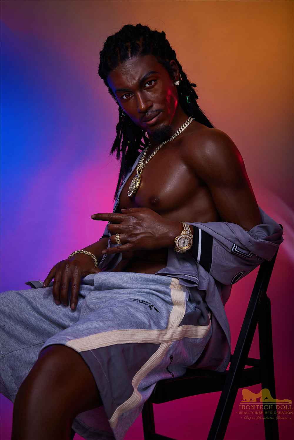 Le design hyperréaliste des poupées en silicone Irontech établit de nouvelles normes de réalisme et vous oblige parfois à y jeter un second coup d'œil. Dotée d'un squelette humanoïde et capable de conserver la chaleur corporelle, cette poupée sexuelle masculine offre une position debout et une peau si douce et réaliste que chaque contact est captivant. Le souci du détail des poils réalistes sur les jambes, les bras, la poitrine et même la barbe fait de cette poupée sexuelle un chef-d'œuvre de réalisme, configurable à souhait. De nombreuses autres options sont également possibles, comme la taille du pénis et bien plus encore.